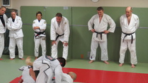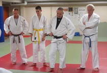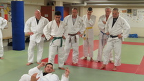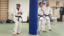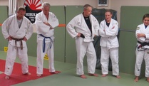 ![]() Eturivissä Katjusa Hörman (judo 2dan bjj 1dan) , Marcus Tulion (bjj 4dan) ja Kurikan Seibukanin judo-opettaja Hiro Tanayama judo 7.dan |