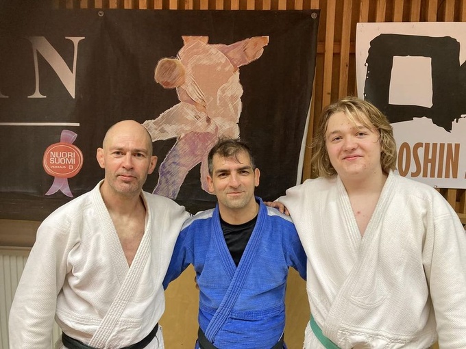 ![]() Vasemmalla Mika Nurmi, keskellä Mohammad Ghanbari (Porin Fudoshin) ja Arttu Mäkelä. |