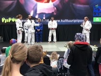 ![]() Takana keskellä on judo-opettajamme Hiro Tanayama (7.dan ) ja takana vasemmalla on valmentajamme Mika Nurmi (4.dan) |