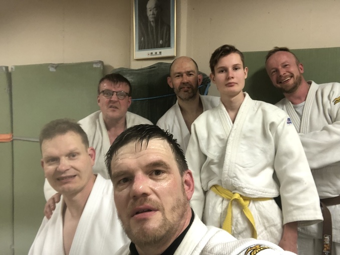 Ensimmäisessä kuvassa ovat aikuisten harjoitukset, jossa oli kuusi judokaa (neljä mustaa vyötä).